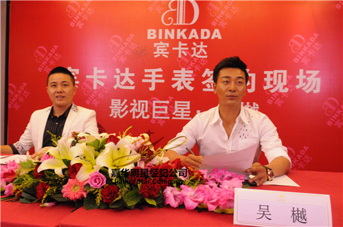 2014年7月7日,深圳時尚腕表品牌賓卡達(dá)表業(yè)通過我司嘉華明星經(jīng)紀(jì)公司聘請動作明星吳樾擔(dān)任賓卡達(dá)形象大使,在北京麗都維景國際會議中心舉行了盛大的“賓卡達(dá)·創(chuàng)世之作”發(fā)布活動,宣布與中國著名武打明星吳樾正式簽約,這是賓卡達(dá)(binkada)首次與華人明星簽約。賓卡達(dá)制表集團(tuán)董事長陳曉洪及總經(jīng)理謝秋梅親臨現(xiàn)場見證者一歷史性的的時刻!http://www.vhye9.cn/star_1138.html