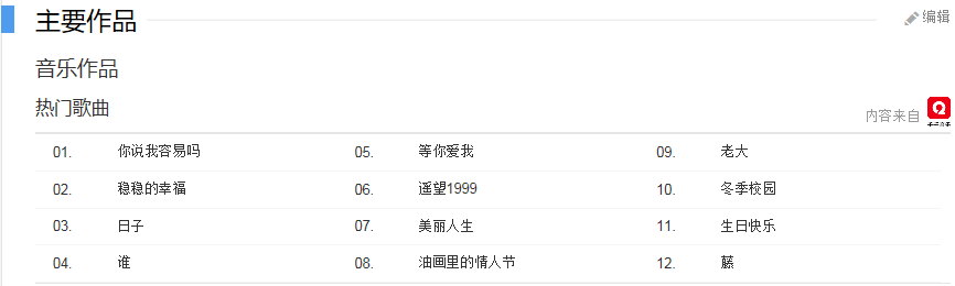 代表作品:因為愛情,北京歡迎你,等你愛我,誰,日子,歸去來,穩(wěn)穩(wěn)的幸福,最熟悉的陌生人、我變了我沒變